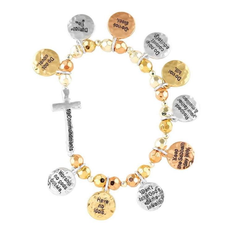 3 Tone 10 Commandments Cross Bead Stretch (Bracelet/Wristband)