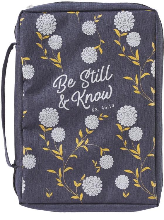 Be Still and Know Psalm 46:10 Floral Navy Blue Canvas Bible Cover for Women Larg