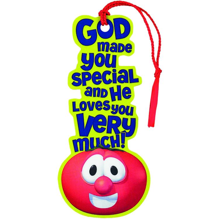 Young children, especially VeggieTales(R) fans, will enjoy this fun bookmark featuring Bob Tomato and the words “”God made you special and He loves you very much!””. Laminated durable card stock bookmark is about 6″” long and is finished with a tassel. Makes a great small gift for children in a group setting such as a Christian school, Sunday school or Vacation Bible School. Sold in packages of 12.