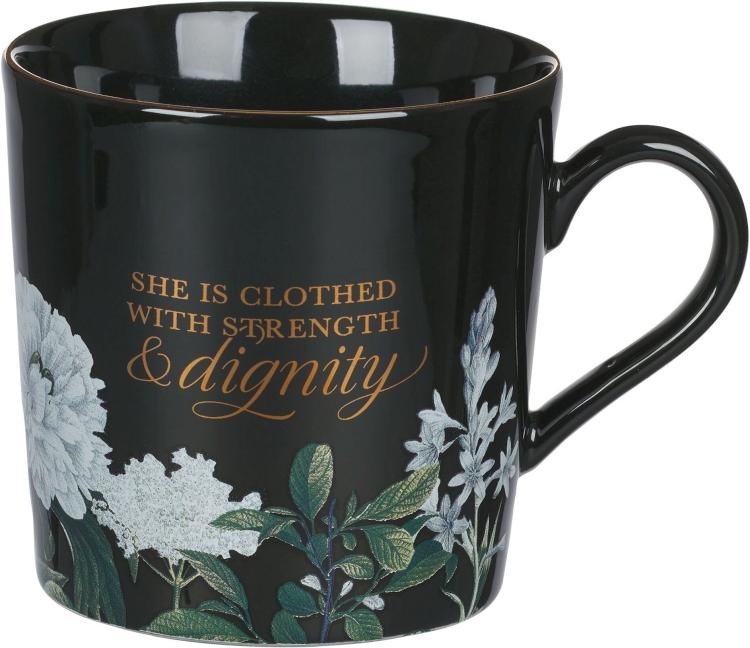 Whether you’re looking to express gratitude to your Bible study leader at the end of the year, a teacher or professor that has supported you, or show appreciation to your supervisor, the Strength and Dignity Black Floral Ceramic Coffee Mug is the best choice to say how thankful you are.