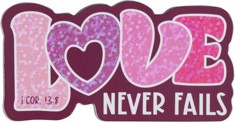 The Love Never Fails Magnet is an adorable reminder that love rights all wrongs and that it never fails.