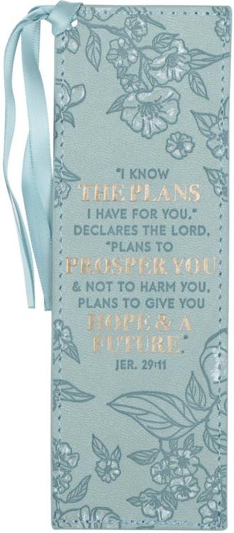 Say goodbye to the days of dogearing pages when you buy the beautifully designed Plans to Prosper You Teal Faux Leather Bookmark. The well-known verse from Jeremiah 29 on this bookmark serves as an encouraging reminder that God cares for you and has lovingly planned your future.