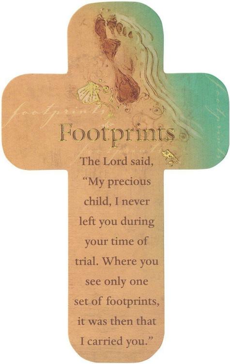 A serene beach scene on the Footprints Cross Bookmark Set tells the story of the beloved poem~ Footprints. This poem beautifully explains how God carries us when we are too weak to walk ourselves.