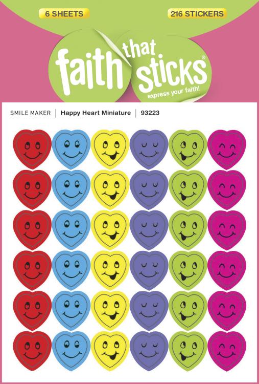 These miniature hearts are guaranteed to get a smile from any boy or girl. The smiles, grins, and eyes on each sticker face vary just a bit-like the boys and girls you’ll share them with. Six vibrant colors make them great for attendance charts and reward stickers. Just over ” x ” each. Six sheets, 36 stickers per sheet; 216 stickers per package.