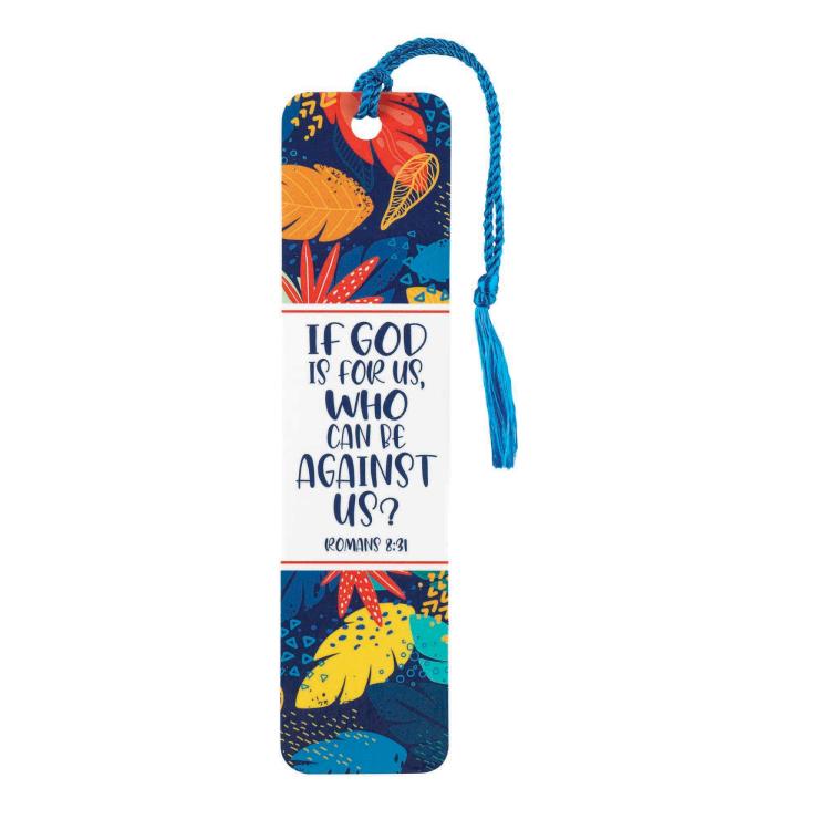 “”If God is for us, who can be against us?.”” Bookmark displays the words of Romans 8:31 along with a vibrant design. Size is 1 1/2″” x 6″”; finished at top with a tassel-tipped cord. The sturdy paper stock is clear laminated for extra durability.