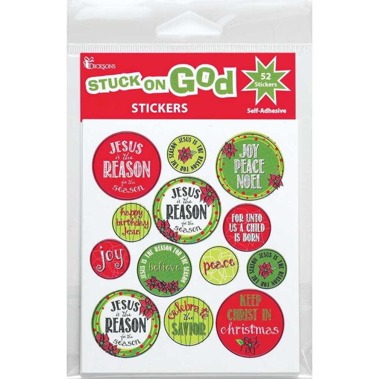 Jesus is the Reason Stickers – Each package has 13 stickers to a sheet, 4 sheets to a package in clear header bag. Minimum 6 pkgs.