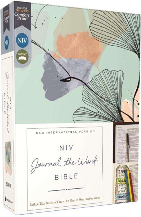 Share your thoughts next to treasured Scripture.The NIV Journal the Word(R) Bible allows you to creatively express yourself every day with plenty of room for notes or verse art next to your favorite verses. This single-column journaling Bible features thick cream-colored paper with lightly ruled lines in the extra-wide margins, perfect to reflect on God’s Word and enhance your study. Available in unique and beautiful covers to choose from.Expertly designed for the New International Version (NIV) text, Zondervan’s NIV Comfort Print(R) typeface delivers a smooth reading experience that complements the most widely read contemporary English Bible translation.Excellent for a gift or for personal use, this Bible can also be a cherished heirloom to pass on to future generations with your personal writings inside!Features:Complete text of the accurate, readable, and clear New International Version (NIV)Lined, wide margins for notes and personal reflectionsThick cream paper for enduring note-taking or personal artworkWords of Jesus in redTwo satin ribbon markersLeathersoft cover lies flat when openExclusive Zondervan NIV Comfort Print typefacePrint size: 9.5
