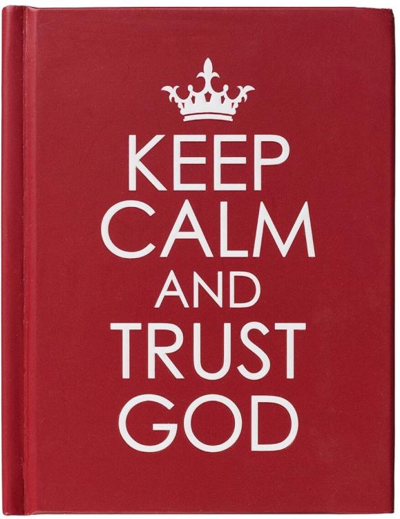 The Keep Calm and Trust God Red Hardcover Gift Book features an encouraging collection of inspiring quotes and Scripture verses about the power of faith.