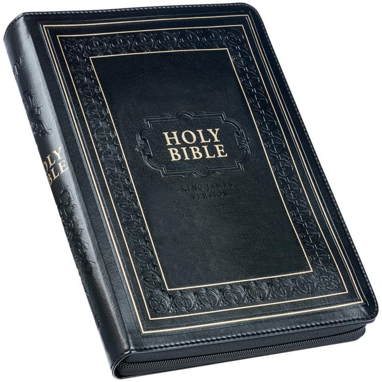 The timeless design of the Black Framed Faux Leather Giant Print Full-size KJV Bible with Thumb Index and Zippered Closure ensures that it will be a well-received gift for anyone special in your life.