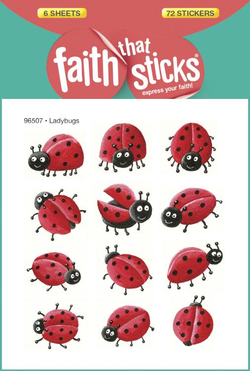 Everyone loves ladybugs! And the cheerful, engaging ladybugs illustrated in this collection are no exception. Kids will love decorating charts, pictures, and crafts with this set of stickers. Pick a favorite ladybug and create your own masterpiece with this charming collection that uses illustrations taken from Big Thoughts for Little People by Kenneth Taylor, illustrated by Andrea Petrlik Huseinovid. Includes 6 sheets with 12 stickers per sheet for a total of 72 stickers.