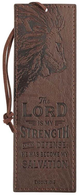 The Lord is My Strength Brown Faux Leather Bookmark is part of The LORD is My Strength Collection that includes a faux leather journal and faux leather Bible cover.