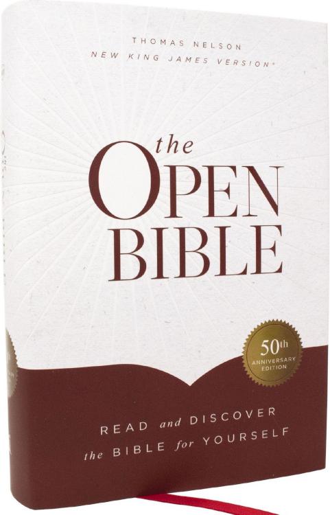 Discover the extraordinary depth and wisdom of the Bible for yourself!For over 50 years, The Open Bible has been a trusted resource for exploring and understanding Scripture. Join the millions who have navigated the treasures of God’s Holy Word with a powerful collection of topical tools, outlines, cross-references, articles, and more. With this time-tested Bible, you can trace the interconnected themes from Genesis to Revelation, easily find key teachings, and appreciate the beauty of this divinely inspired 66-book masterpiece.Features include:Topical Index to the Bible-This easy-to-navigate feature quickly displays the scriptural connections between more than 8,000 names, places, concepts, events, and doctrines.Concordance-Quickly find the Bible verses you’re looking for with over 3,500 word entries with over 9,300 Scripture references.The Visual Survey of the Bible-The detailed 24-page visual overview of the Bible unfolds the people, events, and themes of scripture at a glance. Life application notes crystallize central spiritual truths.Bible Book Introductions-Extensive at-a-glance outlines plus a detailed overview of the overview help broaden your perspective of each book.How to Study the Bible-Expert advice for both personal and family Bible study, plus helpful principles of Bible interpretation.Over 200 Word StudiesOver 40 Charts, Maps, and IllustrationsStarred Messianic Prophecies-420 stars in the OT and NT denoting prophecies about JesusThe Christian’s Guide to the New Life-A complete doctrinal overview of Scripture divided into 32 “Christian Guides,” supported by hundreds of scripture references.And more: The Scarlet Thread of Redemption, , Read Your Bible Through the Year, 60 Days Through the Story of Scripture reading plan, Between the Testaments, Teachings and Illustrations of Christ, Prophecies of the Messiah Fulfilled in Christ, The Parables of Jesus Christ, The Miracles of Jesus Christ, A History of the Twelve Apostles, The English Bible and Its Development, The History of the Red Letter Bible, Facts about the Bible, The Laws of the Bible, Detailed Maps, A Harmony of the Gospels, and still more.Clear and readable 9-point NKJV Comfort Print(R)