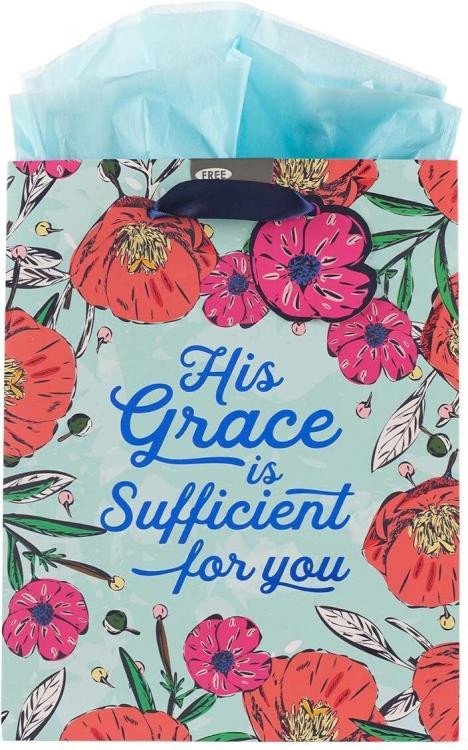 Be the first to review “Pink/Blue Gift Bag/Tissue Paper Set: His Grace is Sufficient 2 Cor. 12:9, Medium” Cancel reply
