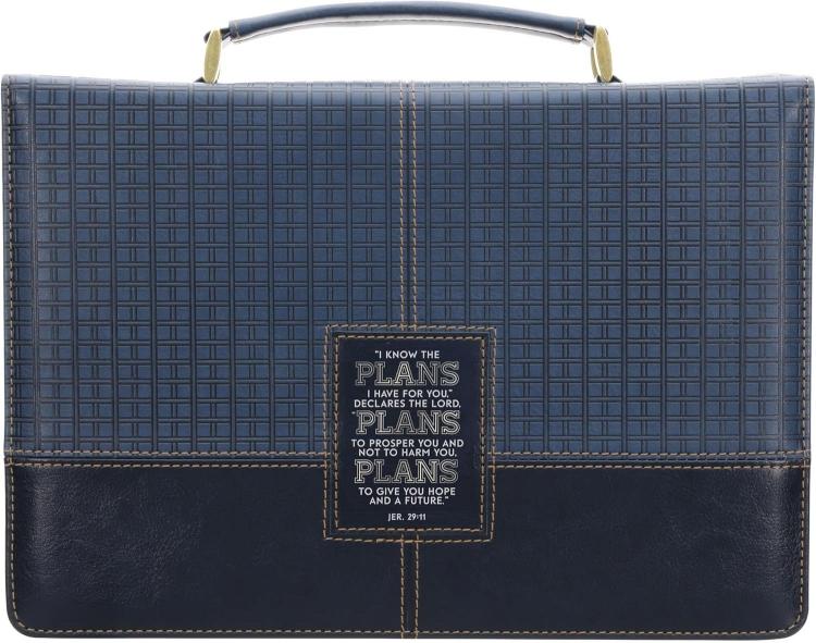 The Plans Modern Blue Grid Faux Leather Classic Bible Cover is one of many gift items within The Plans Modern Blue Grid Collection. Choose a gift for a grad, a friend undergoing a big job change, or a coworker moving away. This collection also includes a zippered journal, keychain, mug, stainless steel water bottle, faux leather bookmark, and gift bag.