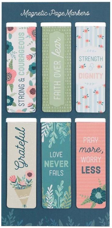 Set of 6 Beloved Faith Favorites w/Floral Garden Inspirational Magnetic Bookmark