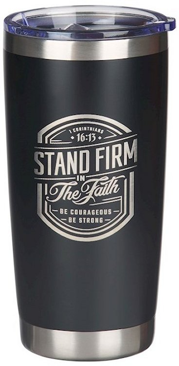 The Stand Firm Black Stainless Steel Travel Tumbler will remind your son and husband to stand firm in affirming the truth of the Bible.