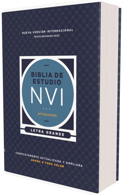 Descubra lo que dice la Biblia. Comprende por qué es importante.Con el exclusivo tipo de letra NVI Comfort Print(R), está reconocida Biblia de estudio a todo color responde a sus preguntas más frecuentes con la cantidad justa de información, colocada en el lugar adecuado.Con un legado de décadas ayudando al lector a comprender el significado de la Biblia, la NVI Biblia de estudio encarna la misión de la traducción NVI de ser una guía precisa, legible y clara de las Escrituras. Específicamente diseñada para ampliar la NVI, el equipo editorial de la Biblia de Estudio NVI incorpora la misma precisión y claridad en cada nota de estudio.Ahora actualizada y revisada, un nuevo comité de los mejores eruditos bíblicos ha estudiado minuciosamente cada nota, cada artículo, cada gráfico y cada ensayo, para refinar aún más este preciado recurso.¿Qué trae esta nueva edición?Texto completo de la Nueva Versión Internacional 2022Más de 21.000 notas de estudio en la parte inferior de la página, con iconos que facilitan la localización de información importante sobre Arqueología, Aplicación personal y Personajes importantesMás de 125 artículos temáticos, 16 páginas de mapas a color, la Concordancia exhaustiva de la NVI con casi 4.800 entradas de palabras y un índice de notas temáticas que permiten un estudio aún más profundo.66 introducciones y esquemas de libros junto con seis introducciones de secciones que proporcionan valiosa información de fondo para cada libro de la Biblia.Mapas, cuadros, diagramas e ilustraciones que aparecen en el texto y aclaran visualmente los relatos bíblicos.Exclusivo tipo de letra, fácil de leer Comfort Print(R) a 10 puntos con palabras de Jesús en rojoNVI Study Bible, Revised text 2022, Large print, Hardcover, 4 Color Interior, Words of Jesus in RedKnow what the Bible says. Understand why the Bible matters.Set in NVI exclusive NVI Comfort Print(R) typeface, this stunning, full-color study Bible answers your pressing questions with just the right amount of information, placed in just the right location.With its decades-long legacy of helping readers grasp the Bible’s meaning, the NVI Study Bible embodies the mission of the NVI translation